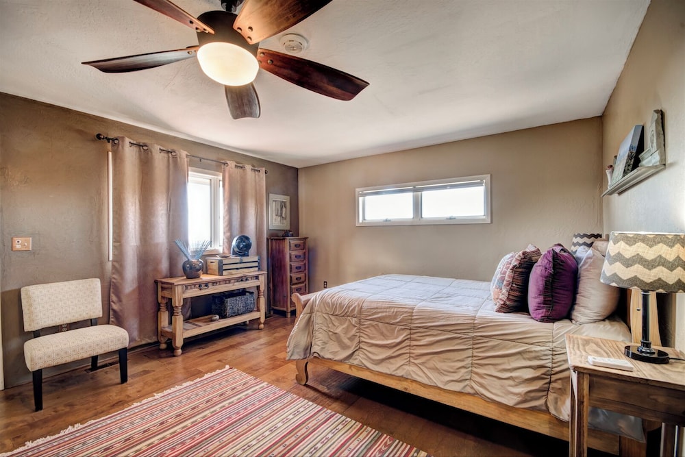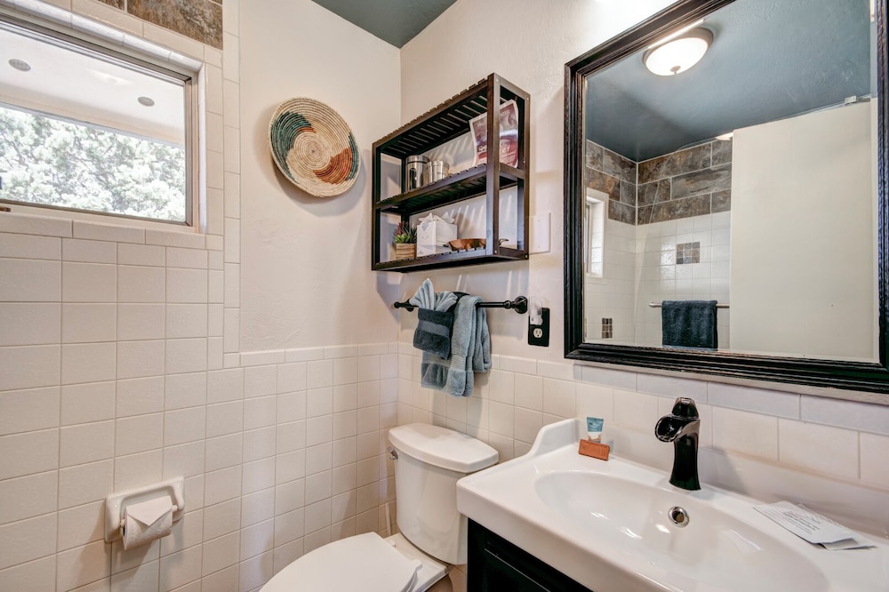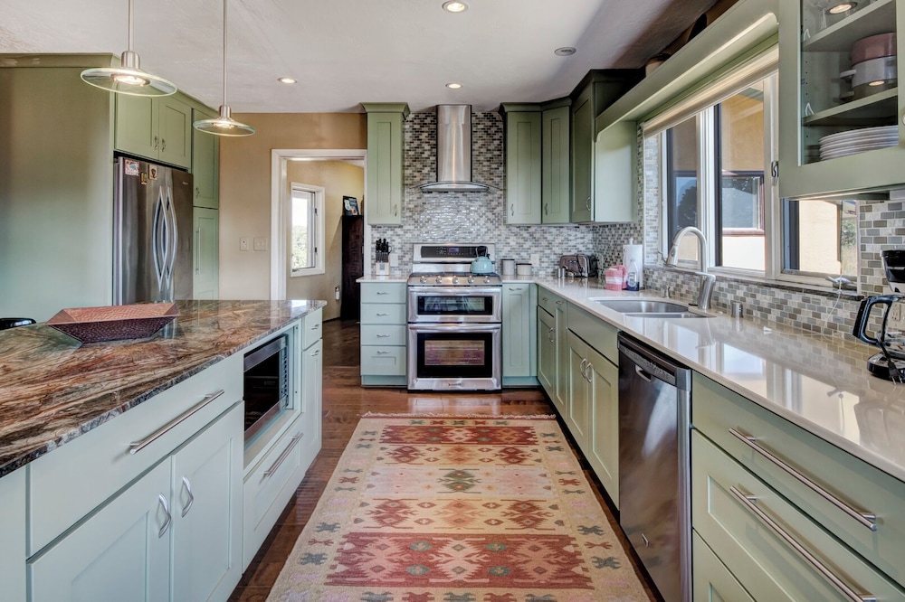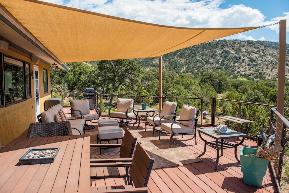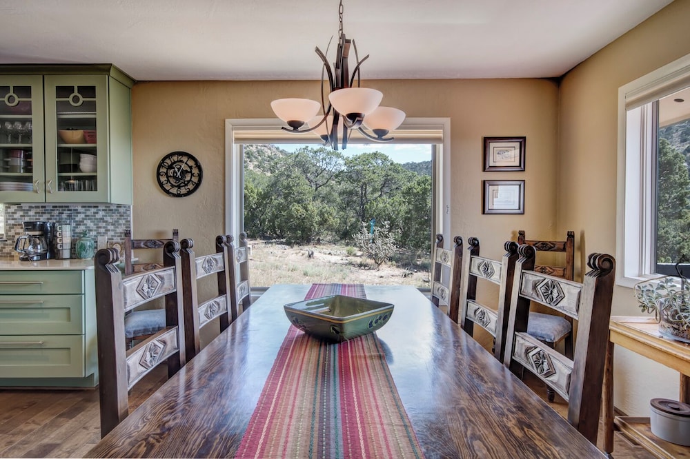 With a stay at this vacation home in Santa Fe, you'll be within a 15-minute drive of Loretto Chapel and Vista Grande Public Library. This vacation home is 9.1 mi (14.6 km) from Santa Fe Plaza and 5.5 mi (8.9 km) from Quail Run Golf Course. Treat yourself to a stay in this individually decorated vacation home, which features a fireplace. There's a private balcony or patio. A kitchen is outfitted with a refrigerator, an oven, and a microwave. Cable television is provided for your entertainment. Distances are displayed to the nearest 0.1 mile and kilometer.