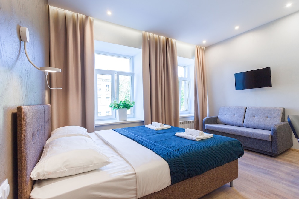 With a stay at Orange Sky in St. Petersburg (Admiralteyskiy), you'll be a 5-minute walk from Trinity Cathedral and 13 minutes by foot from St. Petersburg State University N.I. Pirogov Clinic of High Medical Technologies. This aparthotel is 0.7 mi (1.2 km) from Grand Choral Synagogue and 0.9 mi (1.5 km) from St. Nicholas' Naval Cathedral. Make yourself at home in one of the 10 guestrooms, featuring kitchens with refrigerators and stovetops. Flat-screen televisions with cable programming provide entertainment, while complimentary wireless internet access keeps you connected. Conveniences include safes and desks, and housekeeping is provided daily. Distances are displayed to the nearest 0.1 mile and kilometer.
