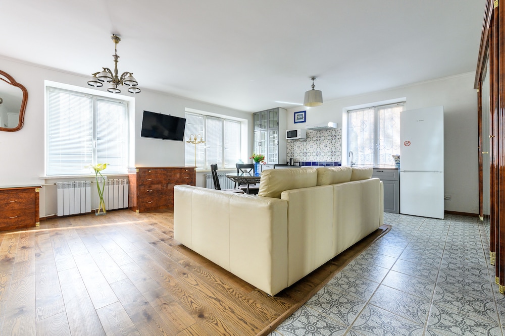 With a stay at this apartment in St. Petersburg (Moskovskiy), you'll be within a 5-minute drive of Heroic Defenders of Leningrad Monument and Victory Square. This apartment is 1.5 mi (2.4 km) from Saint Petersburg Sports and Concert Complex and 3.2 mi (5.2 km) from Grand Maket Russia Interactive Museum. Make yourself comfortable in this individually decorated apartment, featuring a kitchen with a refrigerator and an oven. A plasma television with satellite programming provides entertainment, while complimentary wireless internet access keeps you connected. A private bathroom with a shower/tub combination features a deep soaking tub and complimentary toiletries. Conveniences include a desk and a separate sitting area. Distances are displayed to the nearest 0.1 mile and kilometer.