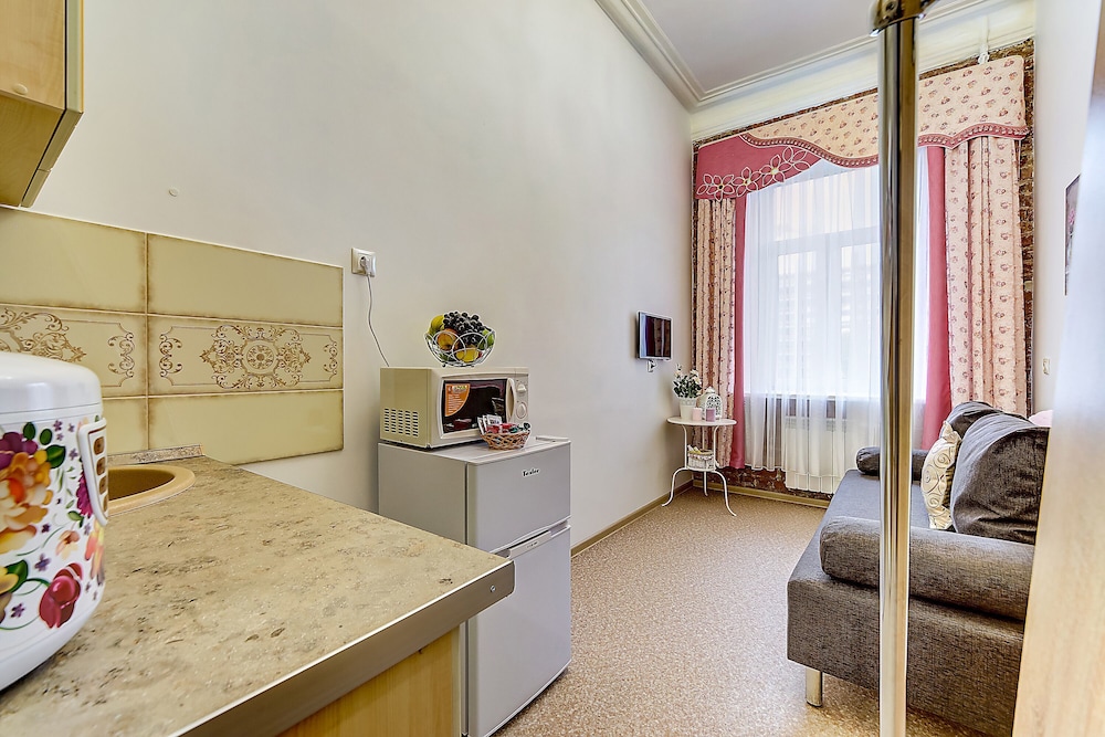 With a stay at Semeiniy ochag in St. Petersburg (Nevsky Prospekt), you'll be steps from Nevsky Prospect and 5 minutes by foot from Alexander Nevsky Monument. This apartment is 0.4 mi (0.7 km) from Saint Alexander Nevsky Monastery and 0.6 mi (1 km) from Vosstaniya Square. Make yourself at home in one of the 5 guestrooms, featuring kitchenettes with refrigerators and microwaves. Flat-screen televisions with cable programming provide entertainment, while complimentary wireless internet access keeps you connected. Conveniences include coffee/tea makers and irons/ironing boards, and housekeeping is provided on request. Distances are displayed to the nearest 0.1 mile and kilometer.