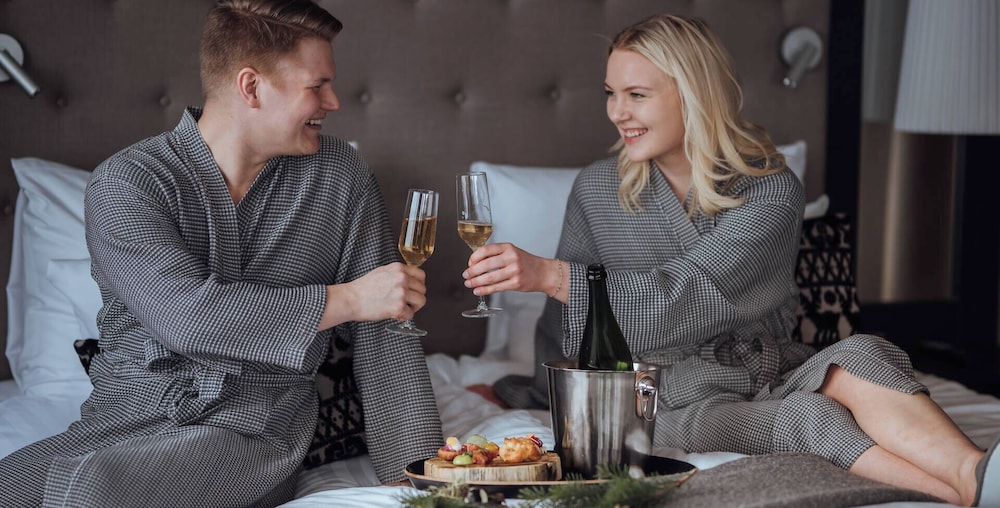 Featured amenities include a computer station, complimentary newspapers in the lobby, and a 24-hour front desk. This hotel has 12 meeting rooms available for events. Limited parking is available onsite. Take advantage of recreational opportunities offered, including an indoor pool, a sauna, and a fitness center. Additional features at this hotel include complimentary wireless internet access, gift shops/newsstands, and wedding services. Enjoy Scandinavian cuisine at Oula Kitchen & Bar, one of the hotel's 2 restaurants, or stay in and take advantage of the room service (during limited hours). Snacks are also available at the coffee shop/cafe. Quench your thirst with your favorite drink at the bar/lounge. A complimentary buffet breakfast is served daily from 7 AM to 10 AM.- Nearby parking fee: EUR 18 per night (492 ft away)