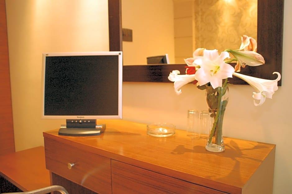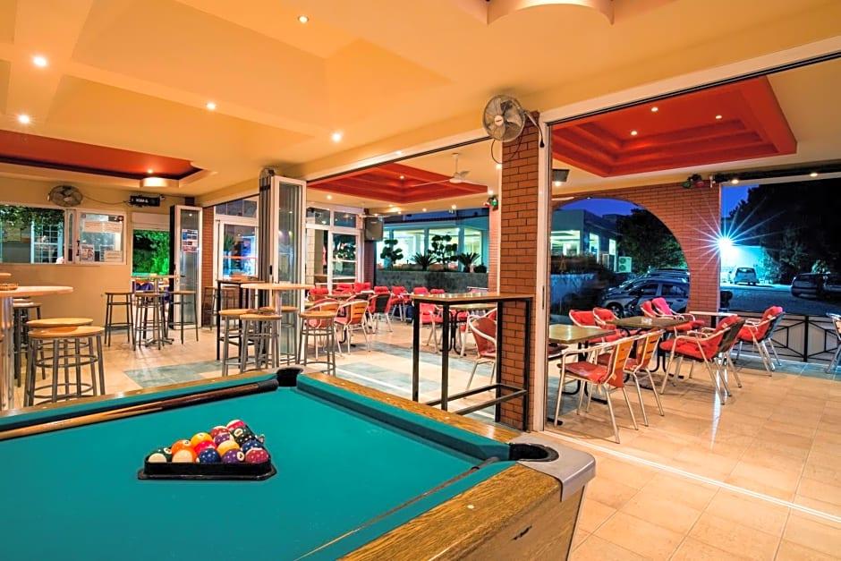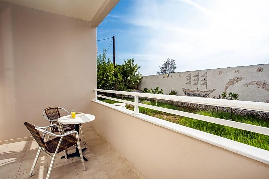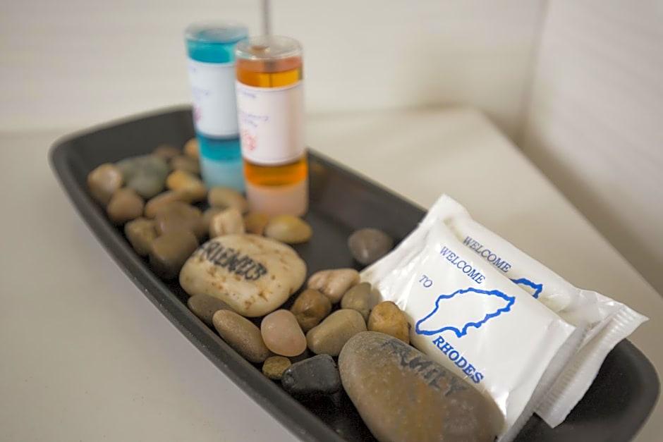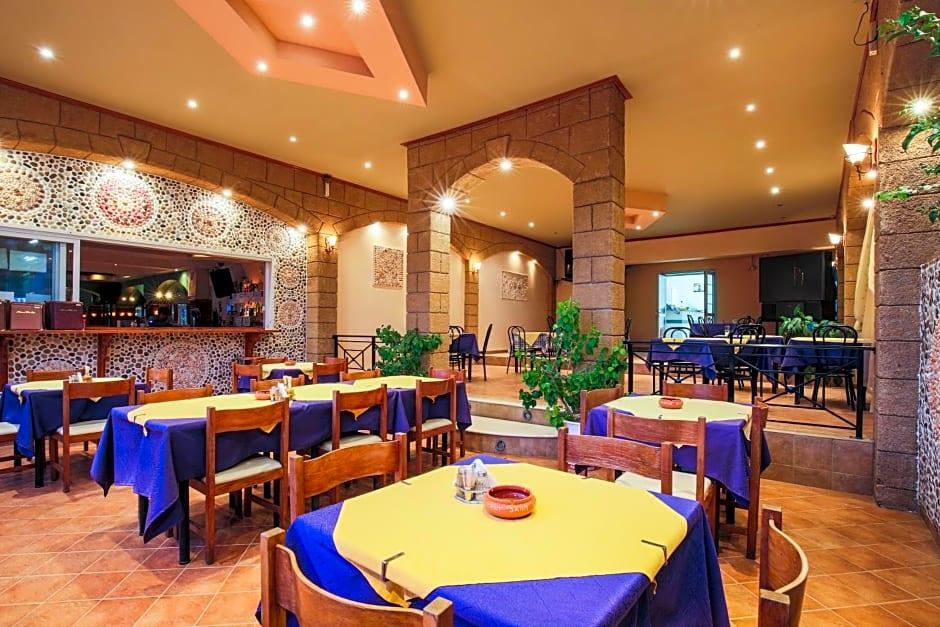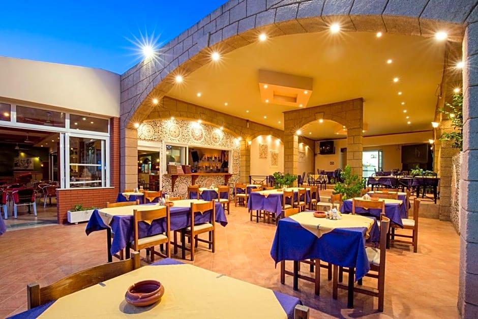 Saint Amon Hotel is just 1640 feet from the center of Faliraki and offers modern, air-conditioned rooms, an on-site restaurant and a café-bar. It is 1969 feet from the beach. The well-furnished, rooms of the Saint Amon Hotel have satellite TV, fridge and tea-and-coffee-making amenities. All rooms include private balconies. Saint Amons café-bar featuring a big TV screen is the perfect spot to enjoy a drink or coffee. The hotel also features a reception, an internet corner and a pool table. Guests can use the swimming pool of a nearby hotel. The center of Faliraki and many beaches are just 5 minutes walk. The Saint Amon is 8. 7 mi from the city of Rhodes and about 11 mi from the airport. Within a 2-minutes' walk guests will find a bus stop to reach Lindos and Rhodes Town. An ATM and a post office are just 328 feet away. Free Wi-Fi is available in the public areas and free parking is possible near the hotel.