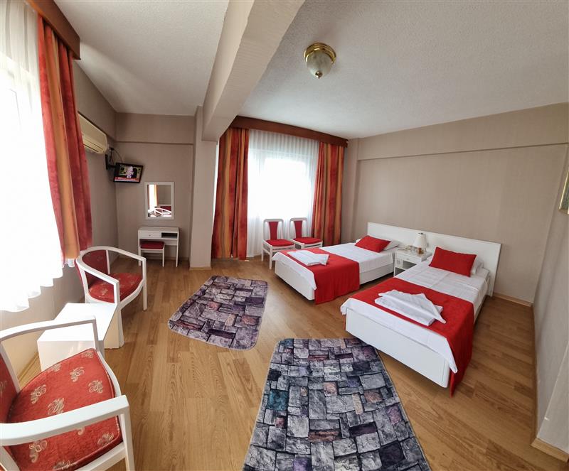 Established in 1990, this 3-star hotel is located in the popular resort town of Altinkum, renowned for its golden beach. The resort's center and beach are within a 10-minute walk. Public transport to local attractions, such as the impressive Apollo Temple in Didim (3. 5 km away), is accessible from the main road, just 500 meters from the hotel. Air conditioning, safe boxes, and minibars are available for an additional fee, payable on-site.