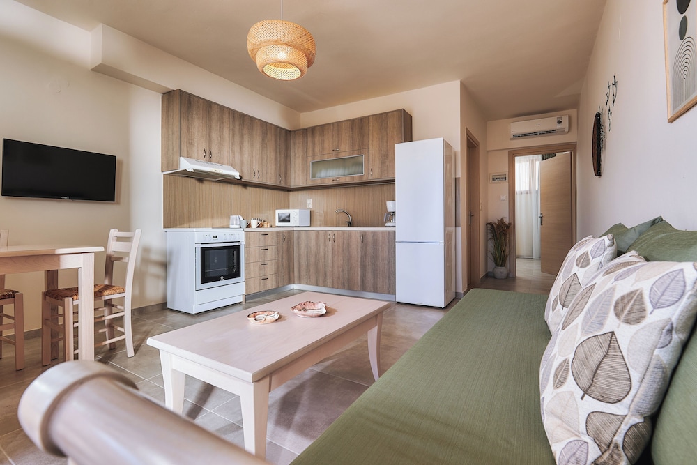 When you stay at OZEA - Elevated Living in Malevizi, you'll be near the beach and 10 minutes by foot from Lygariá Beach. This apartment is 12.5 mi (20.2 km) from Heraklion Port and 14 mi (22.5 km) from Palace of Knossos. Make yourself at home in one of the 6 air-conditioned rooms featuring kitchens with full-sized refrigerators/freezers and stovetops. Rooms have private furnished balconies or patios. Complimentary wireless internet access keeps you connected, and flat-screen televisions are provided for your entertainment. Conveniences include microwaves and coffee/tea makers, and housekeeping is provided weekly. Distances are displayed to the nearest 0.1 mile and kilometer.