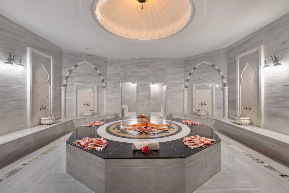 With a stay at Kirman Belazur Resort & Spa - All Inclusive, you'll be centrally located in Serik, within a 15-minute drive of Asklepion Spa & Thalasso and Belek Beach Park. This all-inclusive property is 4.7 mi (7.6 km) from Gloria Golf Club and 5.5 mi (8.8 km) from Belek Public Beach. Make yourself at home in one of the 552 air-conditioned rooms featuring free minibar items and LCD televisions. Rooms have private balconies. Complimentary wireless internet access keeps you connected, and satellite programming is available for your entertainment. Private bathrooms with showers feature complimentary toiletries and hair dryers. Distances are displayed to the nearest 0.1 mile and kilometer.