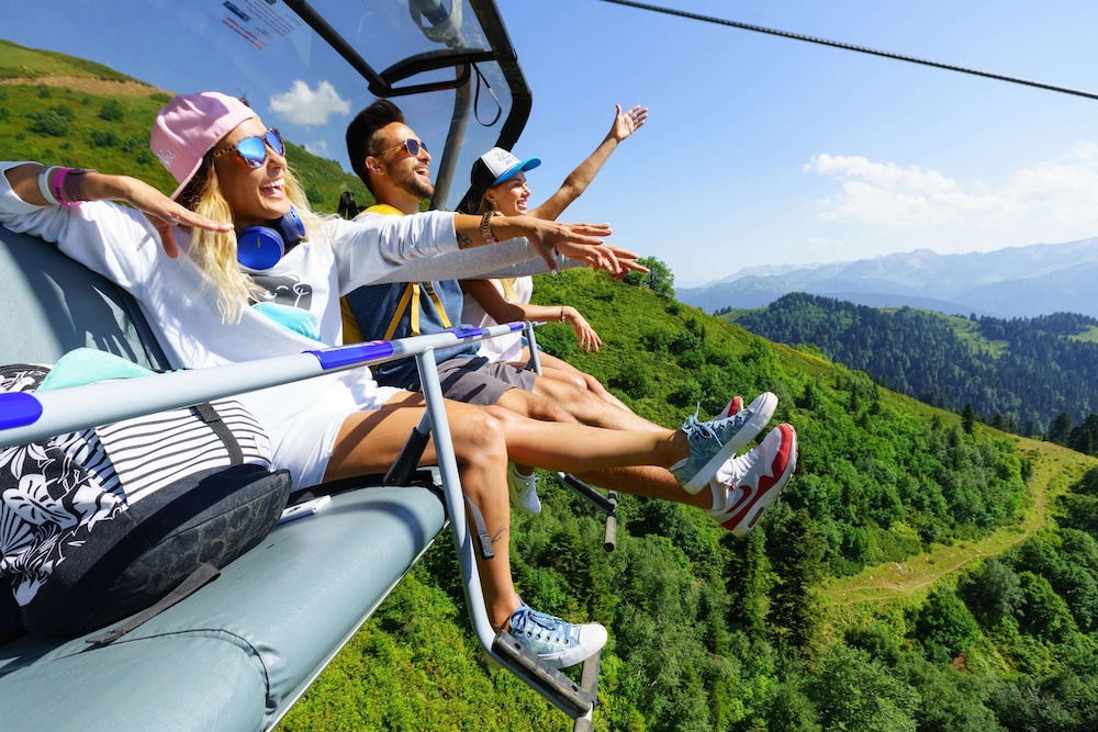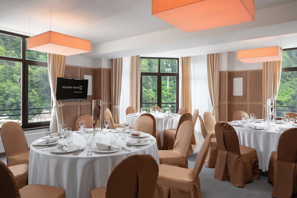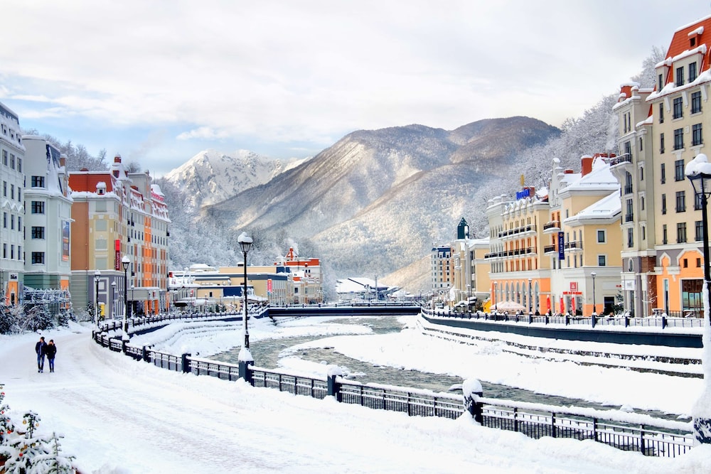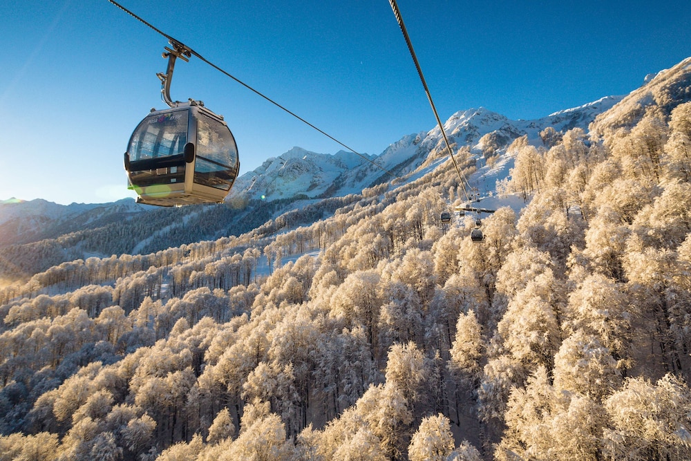 When you stay at Golden Tulip Rosa Khutor in Estosadok, you'll be near ski lifts, just steps from Rosa Khutor Ski Resort and Ski Complex Rosa Khutor. This hotel is 0.3 mi (0.6 km) from Olympia (Lift A) Ski Lift and 1.2 mi (1.9 km) from Alpika-Service Ski Lift. Make yourself at home in one of the 162 guestrooms featuring minibars and flat-screen televisions. Complimentary wireless internet access keeps you connected, and cable programming is available for your entertainment. Bathrooms have complimentary toiletries and hair dryers. Conveniences include phones, as well as safes and desks. Distances are displayed to the nearest 0.1 mile and kilometer.