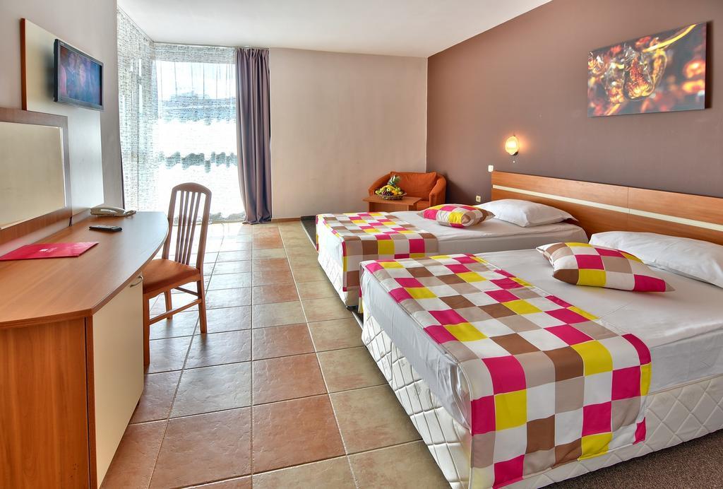 This charming hotel is located in Golden Sands, 250 meters from the beach and 200 meters from the resort's center. The hotel consists of two buildings, one six stories and the other seven, and offers 294 double rooms, 18 apartments, 6 studios, and 7 single rooms. COOEE Mimosa Sunshine Hotel also features a classic restaurant, a Bulgarian restaurant called 'Yaroslavtsi, ' a lobby bar, a pool bar, a 'Daiquiri' bar, a COOEE bar, two outdoor pools, and one indoor pool with a gym. An animation team entertains guests throughout the day with games and evening show programs. For children, the hotel offers two children's pools, a kids' club, and animation activities. The 'Mimosa Wellness & Spa' center offers hairdressing, manicures, facials, and various spa treatments.