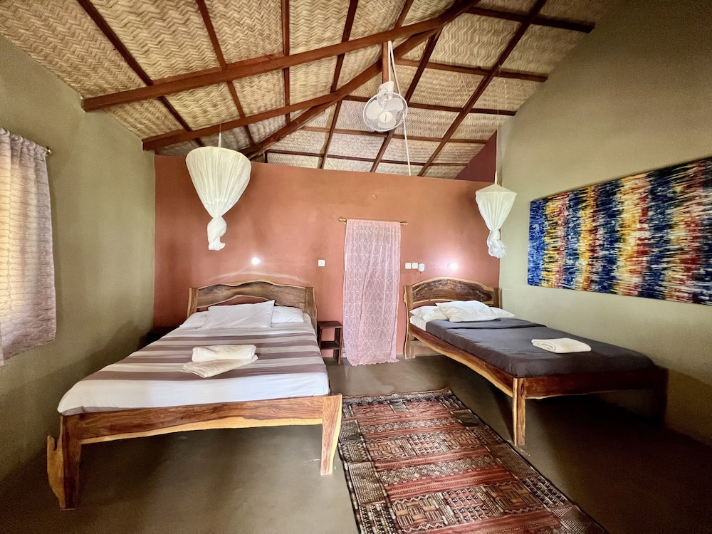 When you stay at Nemasu Eco-Lodge in Gunjur, you'll be on the beach and 6 minutes by car from Gambia Reptile Farm. This beach lodge is 3.3 mi (5.3 km) from Gunjur Central Mosque and 8.4 mi (13.5 km) from Sanyang Beach. Make yourself at home in one of the 12 guestrooms. Rooms have private furnished balconies or patios. Bathrooms with showers are provided. Conveniences include separate sitting areas, and housekeeping is provided daily. Distances are displayed to the nearest 0.1 mile and kilometer.