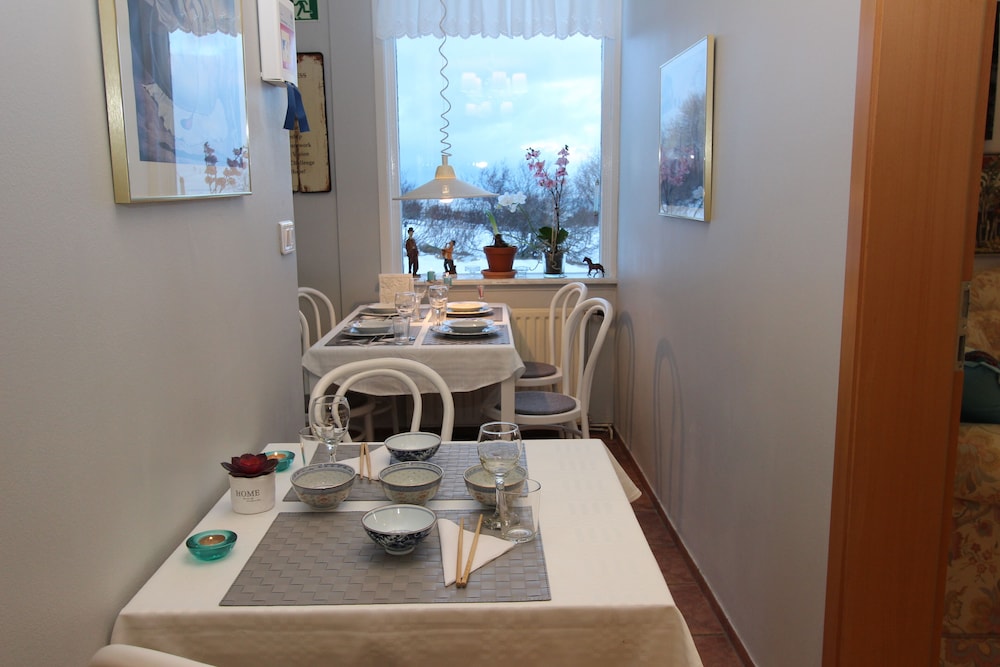 When you stay at The Viking Country Club in Hjalteyri, you'll be next to a golf course and 15.4 mi (24.8 km) from Akureyri Botanical Garden. This beach guesthouse is 12.9 mi (20.7 km) from Mud Pots and 14.3 mi (23 km) from University of Akureyri. Make yourself at home in one of the 7 guestrooms featuring refrigerators and microwaves. Your Select Comfort bed comes with down comforters and Egyptian cotton sheets. Rooms have private patios. Prepare your meals in the shared/communal kitchen. Complimentary wireless internet access is available to keep you connected. Bathrooms feature showers with rainfall showerheads and complimentary toiletries. Distances are displayed to the nearest 0.1 mile and kilometer.