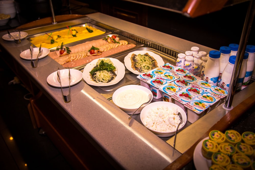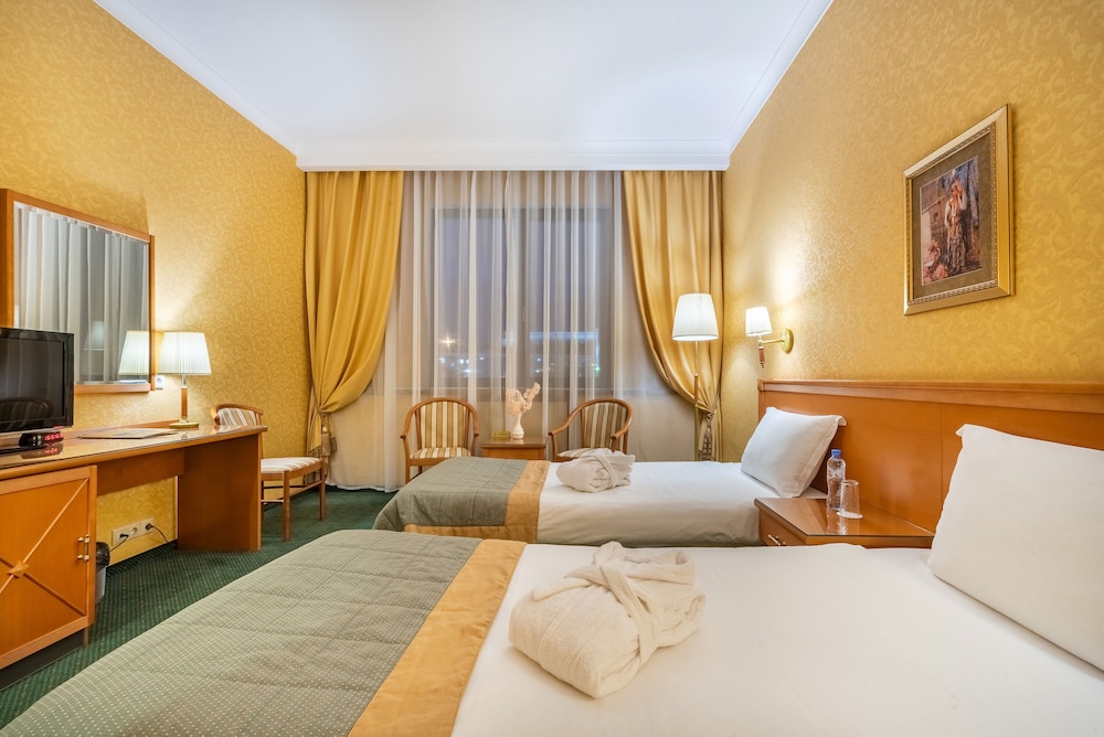 Featured amenities include a 24-hour business center, complimentary newspapers in the lobby, and a 24-hour front desk. A roundtrip airport shuttle is provided for a surcharge (available 24 hours), and free self parking is available onsite. Take advantage of recreational opportunities offered, including an indoor pool, a sauna, and a fitness center. This hotel also features complimentary wireless internet access, a television in a common area, and tour/ticket assistance. Grab a bite at Shafran, one of the hotel's 2 restaurants, or stay in and take advantage of the 24-hour room service. Quench your thirst with your favorite drink at the bar/lounge. A complimentary buffet breakfast is served daily from 7 AM to 10:30 AM.- Airport shuttle fee: RUB 1300 per vehicle (one way)