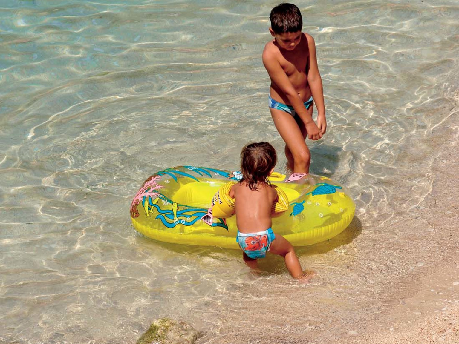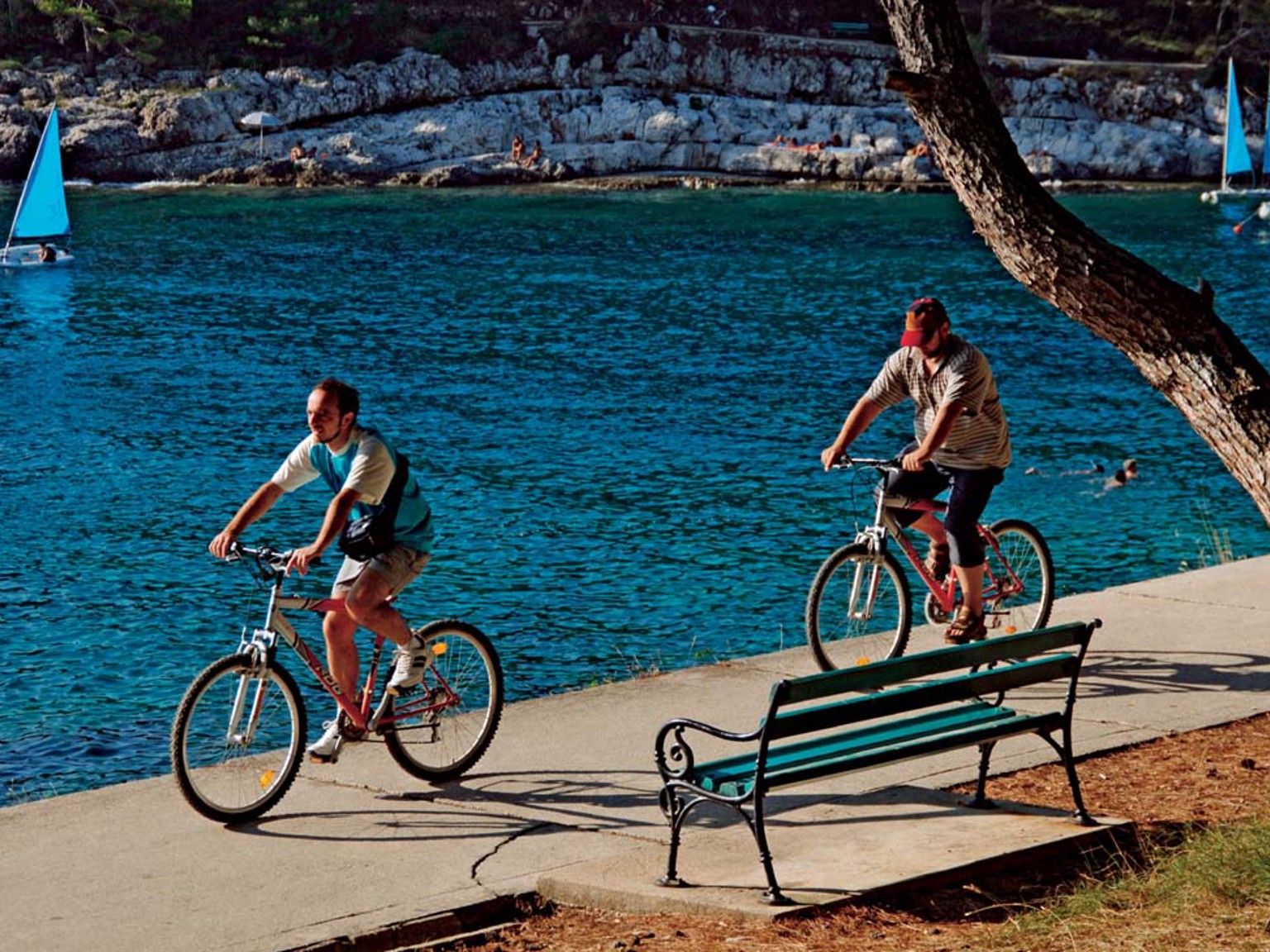 On Losinj, you can swim from built-up bathing terraces or coves with large rocks. The island features a small town, Mali Losinj, and several smaller villages. Perhaps the most charming of all is Veli Losinj, situated just a short distance from Apartments Punta. Veli Losinj is a tiny but incredibly picturesque fishing village with a small marina that stretches far into the village. Here, you'll find several waterfront restaurants, cafes, a grocery store, and a fish market. A few kilometers away, in Mali Losinj, there is a larger selection of restaurants and shopping. The larger harbor is often visited by beautiful large sailboats. The surrounding archipelago offers wonderful boat trips, such as the one to the sandy island of Susak.