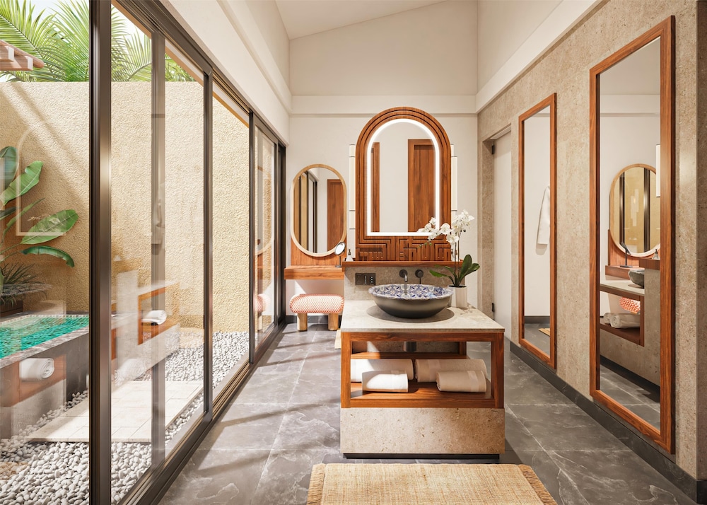 Located in Playa del Carmen, Banyan Tree Mayakoba is by the ocean, within a 15-minute drive of El Camaleón Mayakoba Golf Course and Quinta Avenida. This beach hotel is 11.7 mi (18.9 km) from Xcaret Eco Theme Park. Make yourself at home in one of the 161 guestrooms featuring minibars and espresso makers. Your bed comes with down comforters and premium bedding. Rooms have private furnished balconies or patios. 50-inch Smart televisions with digital programming provide entertainment, while complimentary wireless internet access keeps you connected. Bathrooms feature showers with rainfall showerheads and complimentary toiletries. Distances are displayed to the nearest 0.1 mile and kilometer.