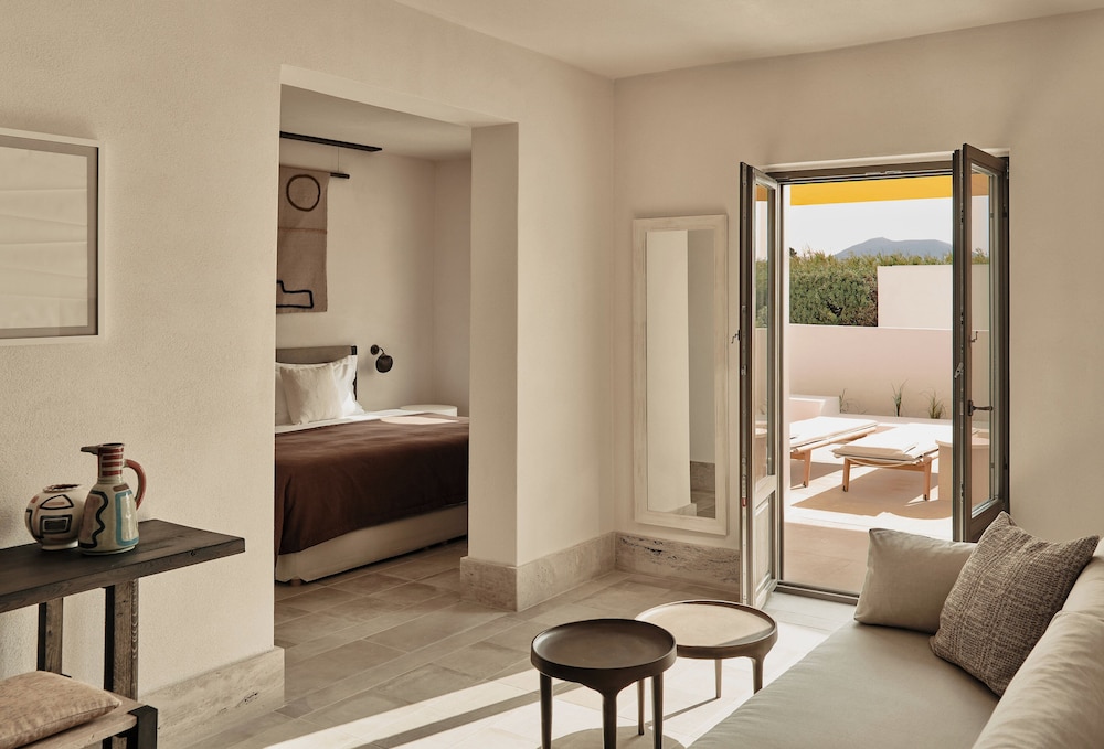 Located in Paros, Parilio, a Member of Design Hotels is a 4-minute drive from Naousa Harbour and 10 minutes from Port of Parikia. This luxury hotel is 4.6 mi (7.4 km) from Santa Maria Beach and 5.6 mi (8.9 km) from Livadia Beach. Make yourself at home in one of the 33 guestrooms featuring minibars and flat-screen televisions. Rooms have private furnished balconies or patios. Complimentary wireless internet access keeps you connected, and satellite programming is available for your entertainment. Private bathrooms with showers feature complimentary toiletries and hair dryers. Distances are displayed to the nearest 0.1 mile and kilometer.