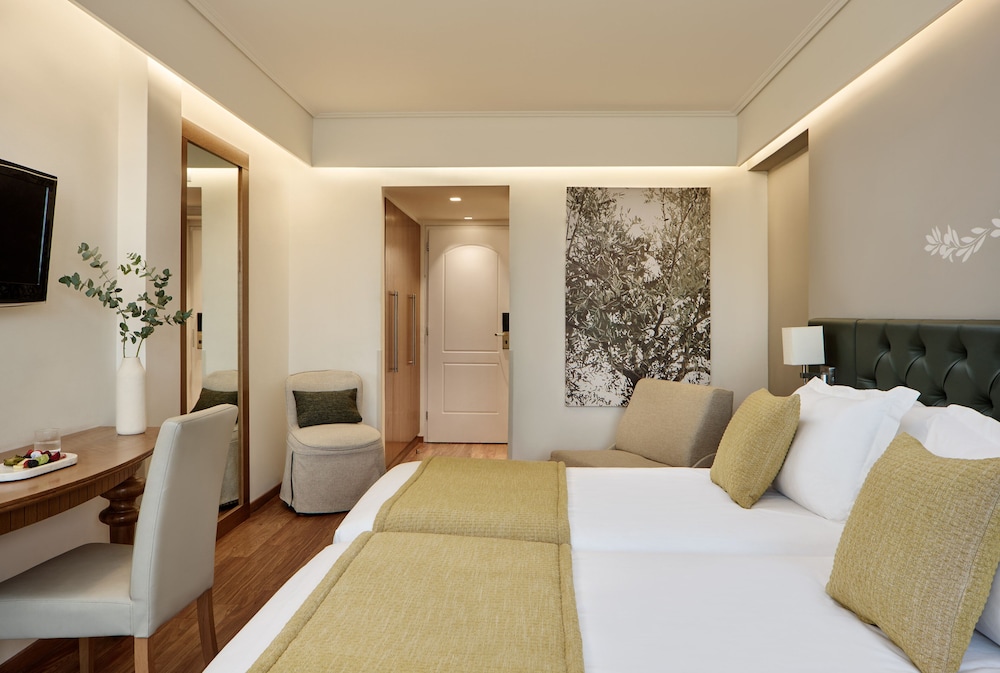 Centrally located in Athens, Titania Hotel is within a 15-minute walk of Hellenic Parliament and Monastiraki Flea Market. This family-friendly hotel is 1.4 mi (2.2 km) from Roman Agora and 1.4 mi (2.3 km) from Ancient Agora of Athens. Make yourself at home in one of the 385 guestrooms featuring minibars and LCD televisions. Complimentary wireless internet access keeps you connected, and digital programming is available for your entertainment. Private bathrooms with showers feature complimentary toiletries and hair dryers. Conveniences include phones, as well as safes and desks. Distances are displayed to the nearest 0.1 mile and kilometer.