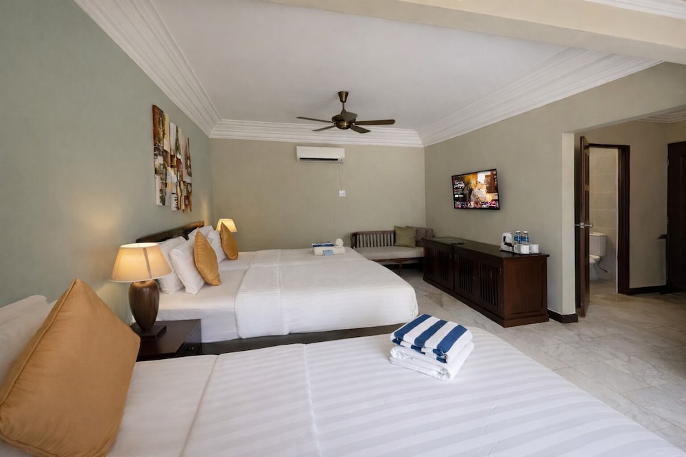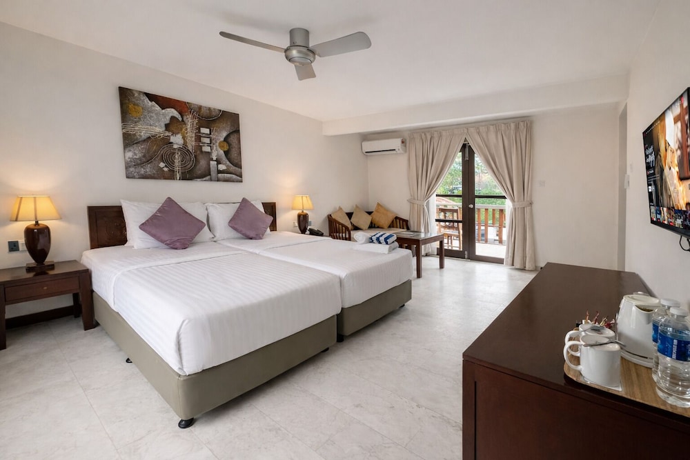 With a stay at The Frangipani Langkawi Resort & Spa in Langkawi, you'll be by the sea, within a 15-minute drive of Cenang Beach and Pantai Tengah Beach. This beach hotel is 0.7 mi (1.1 km) from Tengah Beach and 2 mi (3.2 km) from Cenang Mall. Make yourself at home in one of the 115 air-conditioned rooms featuring refrigerators and LCD televisions. Rooms have private patios. Complimentary wireless internet access keeps you connected, and satellite programming is available for your entertainment. Private bathrooms have complimentary toiletries and bidets. Distances are displayed to the nearest 0.1 mile and kilometer.
