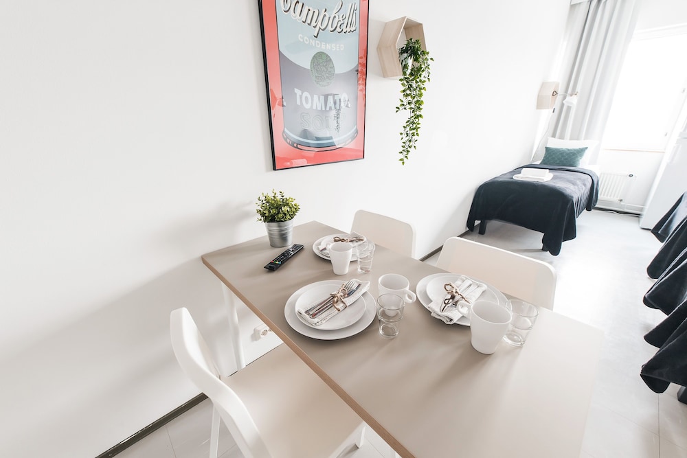 With a stay at Forenom Hostel Helsinki Kutomotie in Helsinki (Lantinen District), you'll be within a 10-minute drive of Helsinki Exhibition and Convention Centre and Vermon Arena. This hostel is 9.1 mi (14.7 km) from Flamingo Entertainment Centre and 2.4 mi (3.8 km) from Terveystalo Kaari Clinic. Make yourself at home in one of the 192 air-conditioned rooms featuring refrigerators and flat-screen televisions. Prepare your meals in the shared/communal kitchen. Complimentary wireless internet access keeps you connected, and cable programming is available for your entertainment. Bathrooms with showers are provided. Distances are displayed to the nearest 0.1 mile and kilometer.