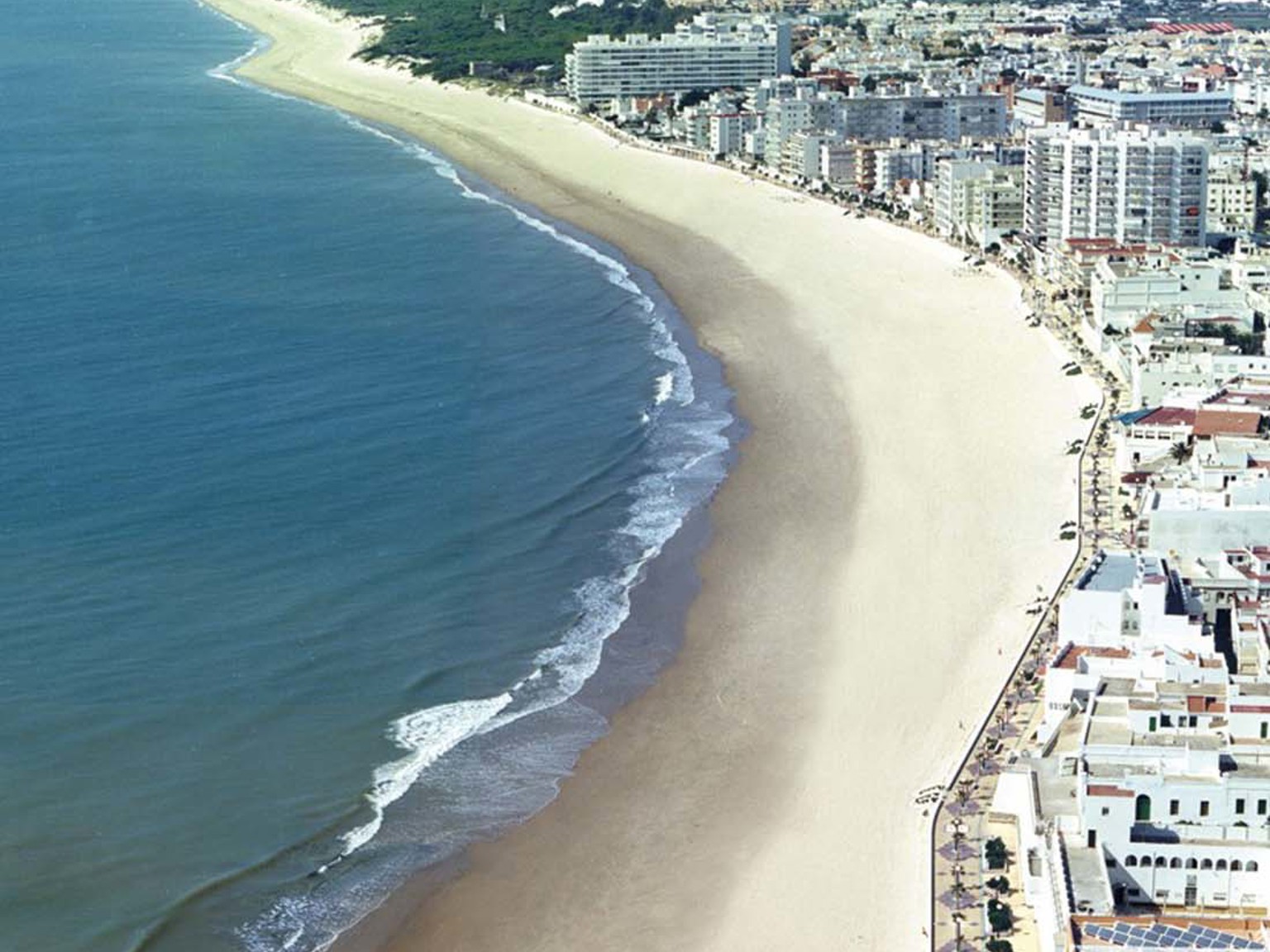 In the small town, there are around 28,000 residents, a number that doubles in the summer when many choose it as a vacation destination. The town is cozy and friendly, with charming alleys, cobblestone streets, and small squares where you can enjoy a drink and tapas. The long and wide sandy beach is directly adjacent to the town and near the hotels, so there are no long distances to cover. The location is perfect for both couples and families with children, and there are several excellent golf courses in the surrounding area. The provincial capital, Cadiz, is only about 47 km away, and it's easy to get there by local bus.