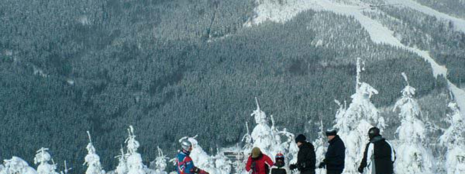 The largest and best-known ski resort, Spindleruv Mlyn, is situated in the scenic Krkonose National Park. The village is a charming ski town reminiscent of Austrian style. It is nestled in a valley and features two ski areas, Svaty Petr and Medvedin. These areas are not interconnected, being about 3 kilometers apart. A complimentary ski bus service operates between them. Svaty Petr and Medvedin are ideal for beginners and intermediate skiers. The resort offers a total of about 25 km of slopes, mainly consisting of blue and red runs. Spindleruv Mlyn is equipped with numerous snow cannons, and the ski areas are continuously being expanded. The region also offers groomed cross-country skiing trails and opportunities for excellent tobogganing.
